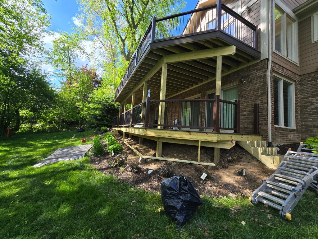 We offer exceptionally built Trex and Wood decks, as well as patios, dry below systems, and custom post and beam wrapping for those looking to upgrade one project or combine it all into a backyard renovation.